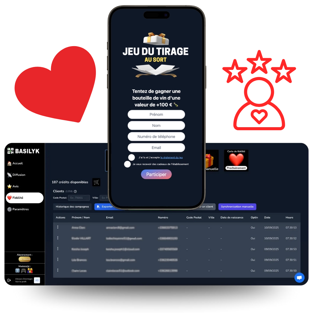 Basilyk combine jeux concours et SMS pour transformer chaque visite en habitude, et faire de vos clients occasionnels de vrais réguliers.