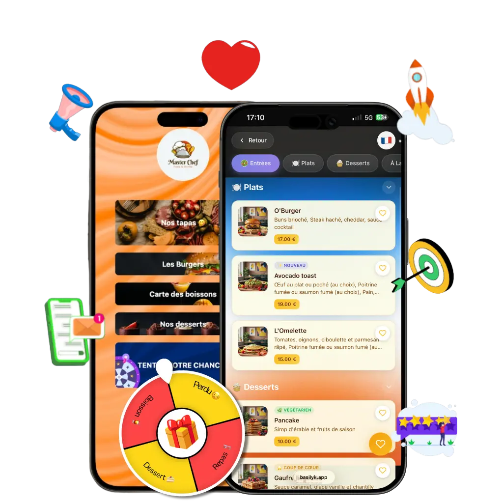 Créez votre menu digital et boostez vos ventes avec nos outils de fidélisation : jeux concours, campagnes SMS et gestion des avis. Déjà adopté par +750 établissements. Installation en moins de 2 min !