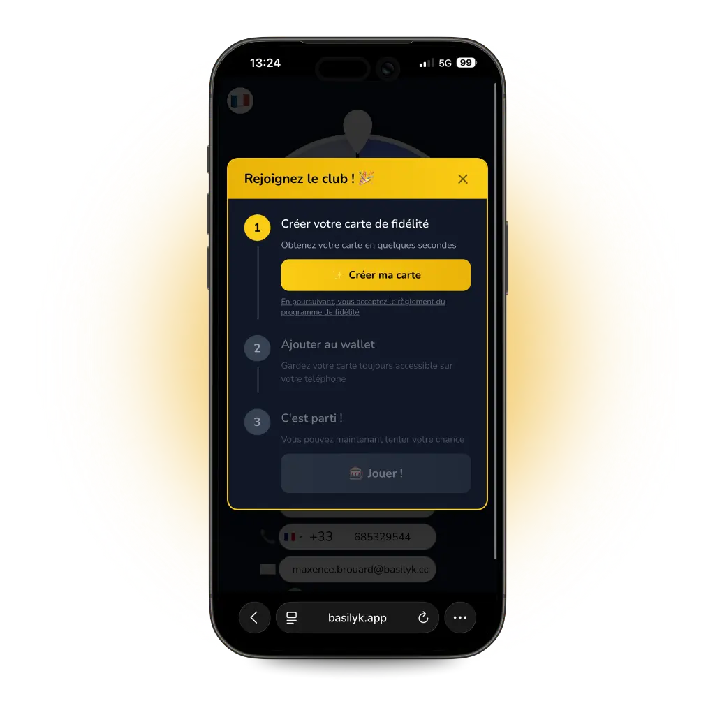 Pour participer à un jeu, vos clients s’inscrivent automatiquement à votre programme de fidélité.