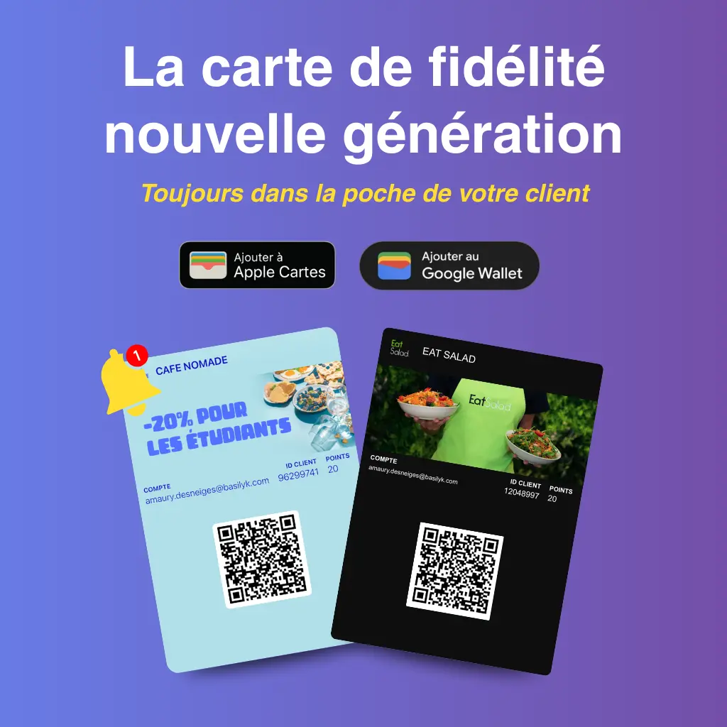 Avec la carte de fidélité Basilyk, vos clients l’ont toujours sur eux, dans le wallet de leur téléphone.